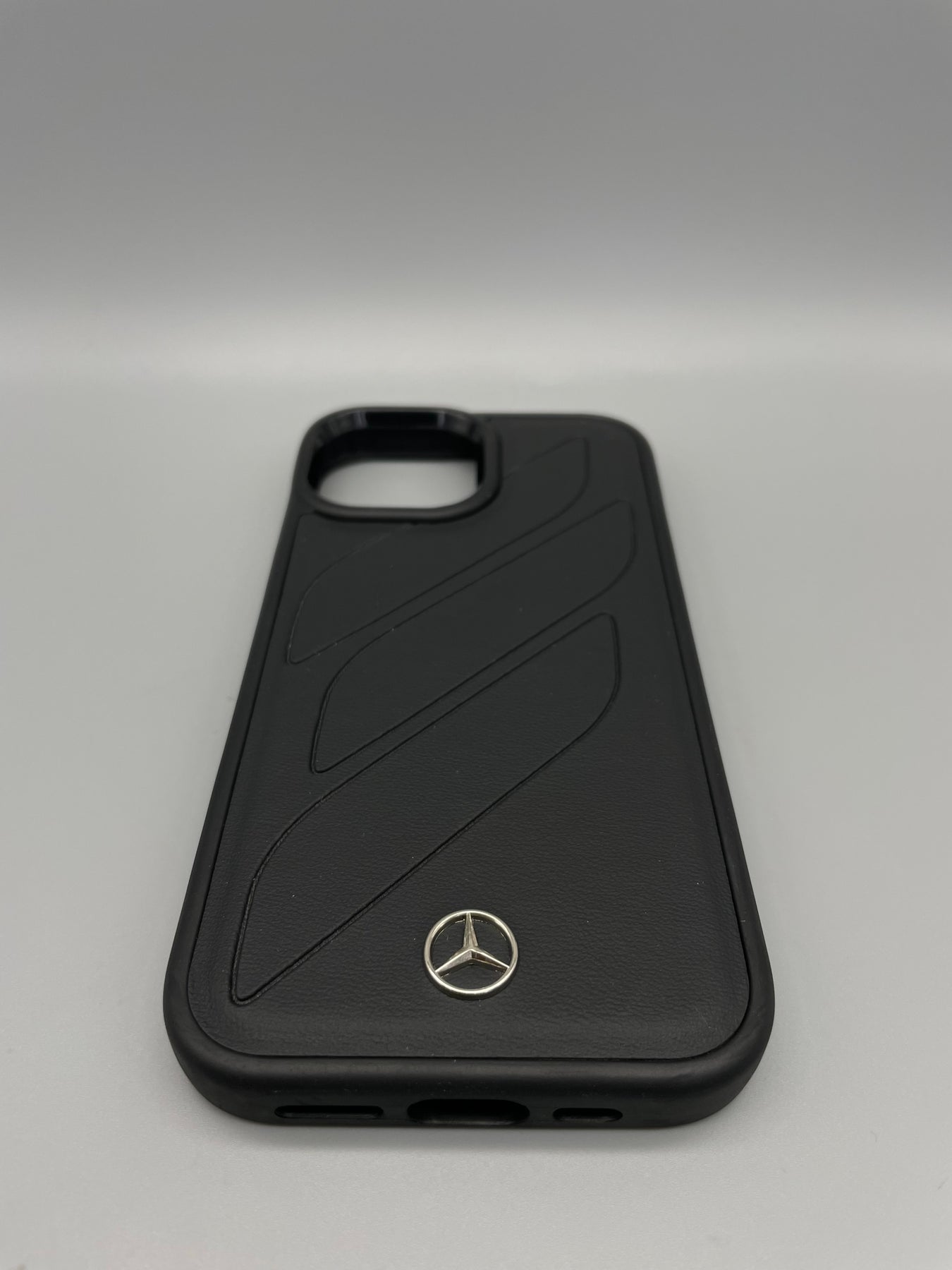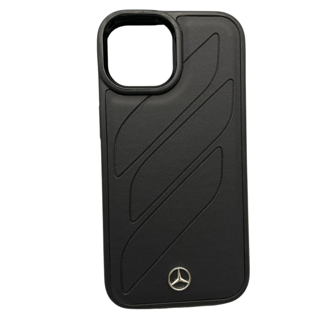 Luxury Leather Texture Case with Metal Logo & Camera Protection – Premium Design