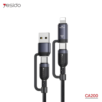 ORGINAL YESIDO CA200 4 in 1 Charging Cable USB&Type-C to Type-C&8-Pin Braided Cable