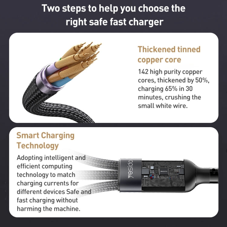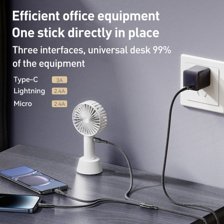 Yesido CA91 3A 3 in 1 USB to 8 Pin+USB-C/Type-C+Micro USB Aluminum Alloy Data Cable (Black)