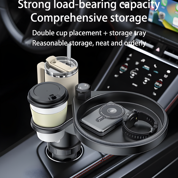 3. 3-in-1 expansion design: The cup holder accommodates any cup up to the diameter of the slot. The removable beverage holder accommodates cola, milk tea, and coffee. The tray storage rack accommodates food, keys, headphones, glasses, and other small items.
